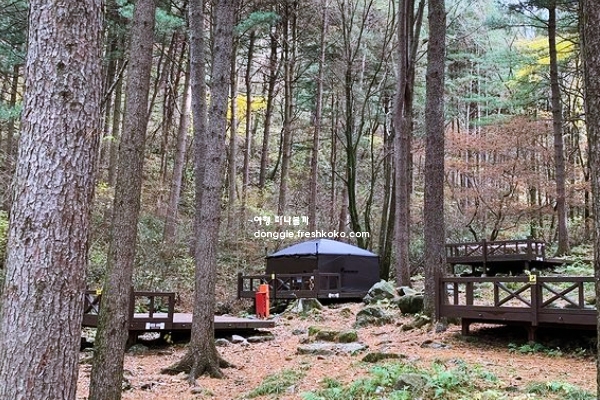 휴양림 안에는 오두막과 캠핑장이 있어 하룻밤 머물며 자연을 가까이에서 경험할 수도 있습니다. 나무 사이로 햇살이 스며드는 아침에는 숲속을 거닐며 상쾌한 공기를 마시는 것만으로도 기분이 좋아집니다.
