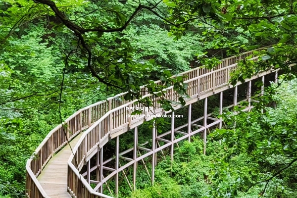 주변에는 작은 연못과 쉼터가 있어 잠시 앉아 풍경을 감상하기에도 좋습니다. 가을이면 단풍이 물들어 더욱 화려한 숲길을 걸을 수 있습니다.