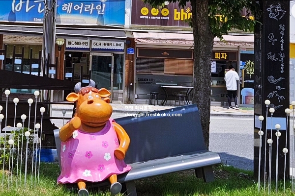 점심시간과 저녁시간에는 많은 사람들이 찾아 활기찬 분위기가 느껴집니다. 마을 곳곳에는 한우와 관련된 조형물이 있어 기념사진을 남기기에도 좋습니다.