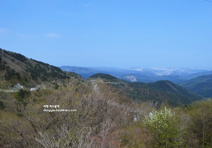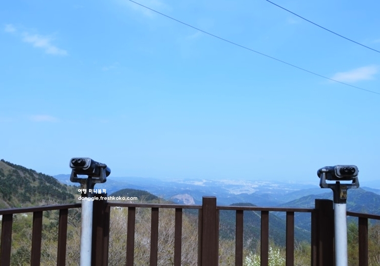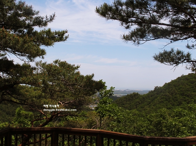 나무 계단을 따라 조금 더 올라가니 탁 트인 전망대가 나왔고, 그곳에서 내려다본 풍경은 강릉 시내와 동해까지 한눈에 담겼습니다. 지나온 길을 되돌아보니 굽이진 산길이 고요한 자연 속에서 조용히 제자리를 지키고 있었습니다.