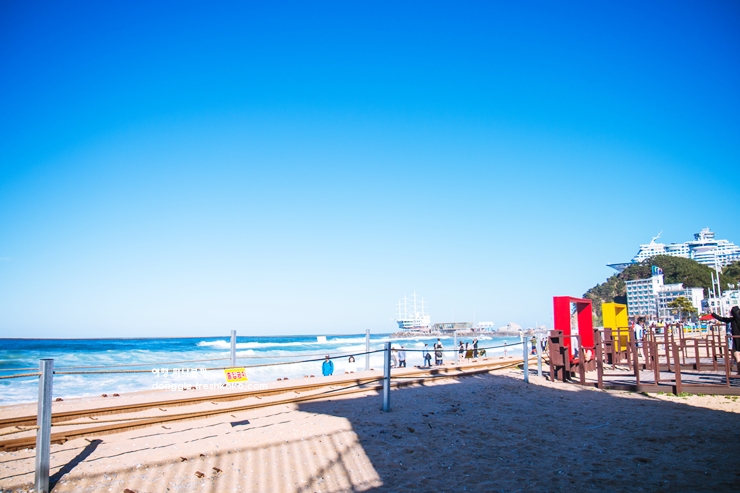 모래사장을 따라 걷다 보니 해변에서는 사람들이 저마다의 방식으로 여유를 즐기고 있었습니다. 파도 소리에 맞춰 천천히 모래 위를 거닐며 바다와 기찻길이 함께 어우러진 풍경을 눈에 담았습니다.