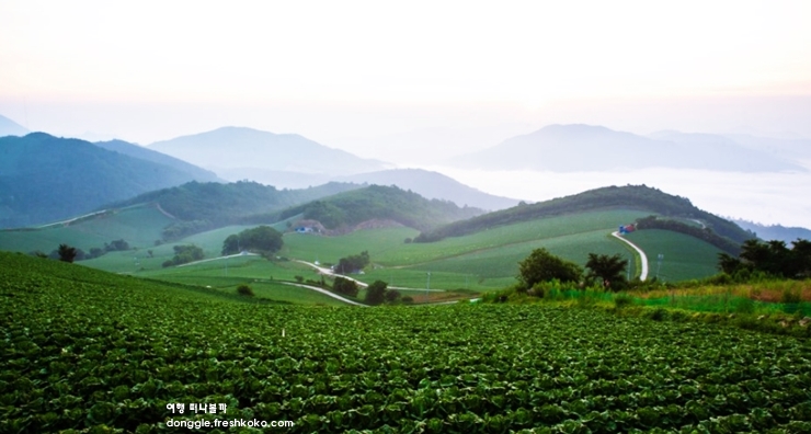 안반데기마을에 도착하니 끝없이 펼쳐진 고랭지 배추밭이 산 능선을 따라 부드럽게 이어져 있었습니다. 높은 지대에 자리한 마을이라 그런지 바람이 시원하게 불어와 공기가 맑고 상쾌하게 느낄 수 있는 강원도 강릉 가볼만한곳 베스트10입니다.