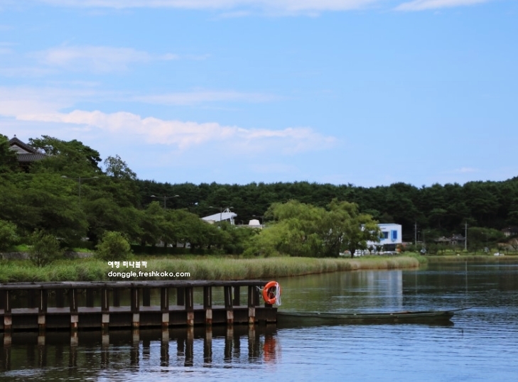 나무데크를 따라 걷다 보니 경포대가 나타났고, 그곳에서 내려다본 호수는 더욱 넓고 깊어 보였습니다. 해 질 무렵이 되자 하늘이 붉게 물들며 호수에 그 빛이 그대로 반영되어 몽환적인 분위기를 자아냈습니다.