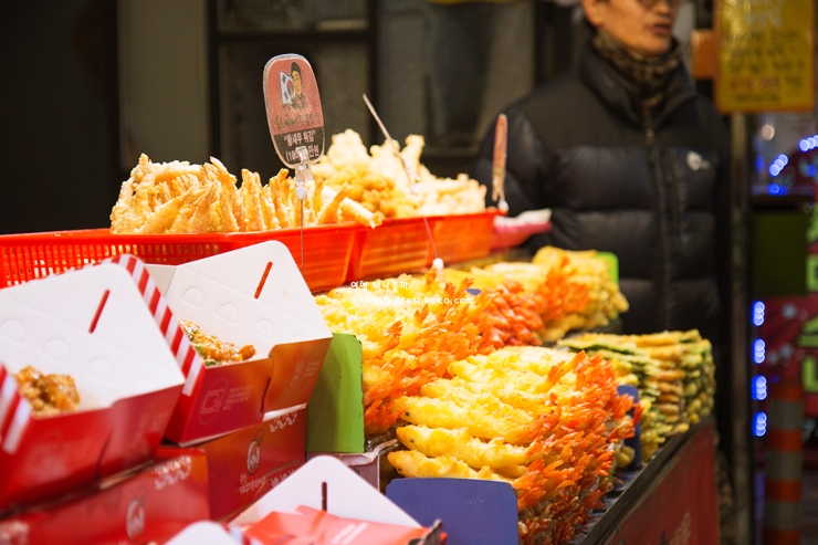 저는 명물이라 불리는 닭강정을 사서 먹었는데 매콤달콤한 양념이 입맛을 돋웠습니다. 시장 안쪽에는 싱싱한 생선과 회를 파는 가게들이 많아서 직접 고르고 식당으로 가져가 먹을 수도 있었습니다.