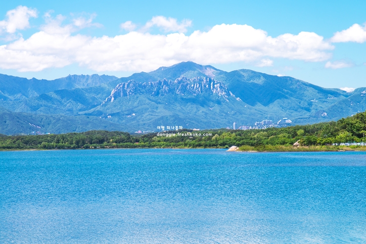 호수 주변에는 커피를 테이크아웃할 수 있는 작은 카페도 있어 여유를 더해줬습니다. 날이 맑으면 설악산 자락까지 호수 위로 비쳐 멋진 풍경을 만들어줍니다. 주변이 조용하고 붐비지 않아 사색하거나 조용히 쉬고 싶은 날에 좋습니다. 속초의 바다와는 또 다른 평온함을 느낄 수 있었던 시간입니다.