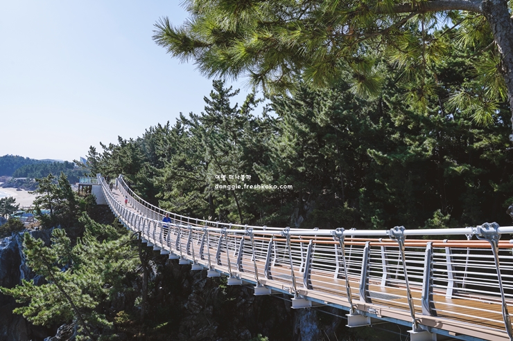 한쪽으론 깎아지른 절벽이 우뚝 서 있고, 다른 한쪽으론 동해 바다가 끝없이 펼쳐져 있어 발걸음마다 감탄이 절로 나왔습니다. 아이는 데크 사이로 보이는 바닷속을 들여다보며 물고기를 찾느라 정신이 없었습니다. 길 중간중간에는 전망대가 있어 잠시 멈춰 서서 풍경을 감상하기 좋았습니다.