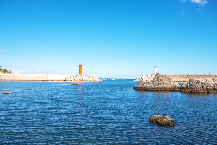바닷가를 따라 걷다 보면 맑고 투명한 바닷물이 발밑까지 훤히 내려다보여 깜짝 놀라게 되는 강원도 국내여름휴가지 추천 장소 입니다. 아이는 발을 담그자마자 물속을 헤엄치는 물고기를 보고 눈을 반짝였습니다.