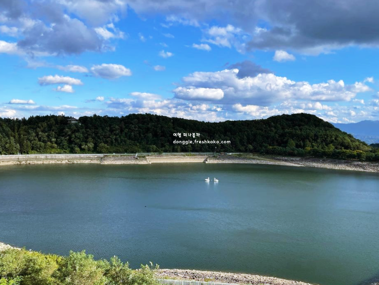저수지답게 수위가 안정적이라 물 위에 비친 하늘과 나무가 정말 또렷하게 보였고요. 평일 오전이라 그런지 사람도 많지 않아 마치 전세 낸 듯 여유롭게 산책할 수 있었어요. 가끔 바람이 세게 불면 물 위로 작은 파문이 일어나는데, 그 움직임을 보고 있으면 시간 가는 줄 몰랐습니다.