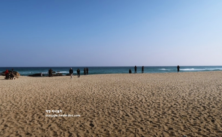 길을 따라 걷다 보니 파도가 부서지는 소리가 가까워지면서 푸른 해변이 눈앞에 펼쳐졌습니다. 모래사장을 밟으며 바라본 수평선은 끝없이 이어져 마음까지 탁 트이는 기분이 들었습니다.