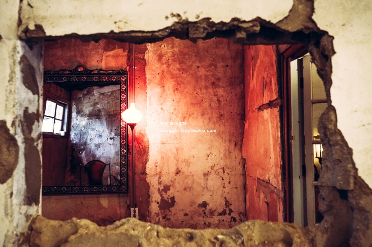 커피 한 모금 마시며 벽면의 그림과 포스터를 바라보니 자연스럽게 과거의 이야기들이 상상됐습니다. 주변 사람들도 조용히 풍경을 즐기고 있어서 카페라기보다 작은 전시장 같았습니다.