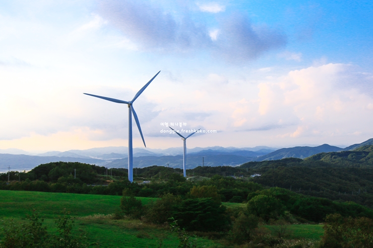 경주 풍력발전단지에 도착하자 끝없이 펼쳐진 초록 언덕 위로 거대한 풍차들이 여유롭게 돌고 있는 경주 가볼만한곳 베스트10입니다. 가까이 다가갈수록 바람을 가르며 회전하는 날개 소리가 묘하게 평온하게 들렸습니다.