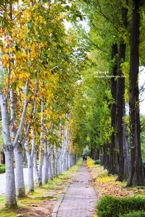 경주산림환경연구원에 들어서자 울창한 숲길이 조용히 길을 내어준 경주 가볼만한곳 베스트10입니다. 넓은 산책로를 따라 걷다 보니 나무마다 이름표가 붙어 있어 자연에 대한 배려가 느껴졌습니다.