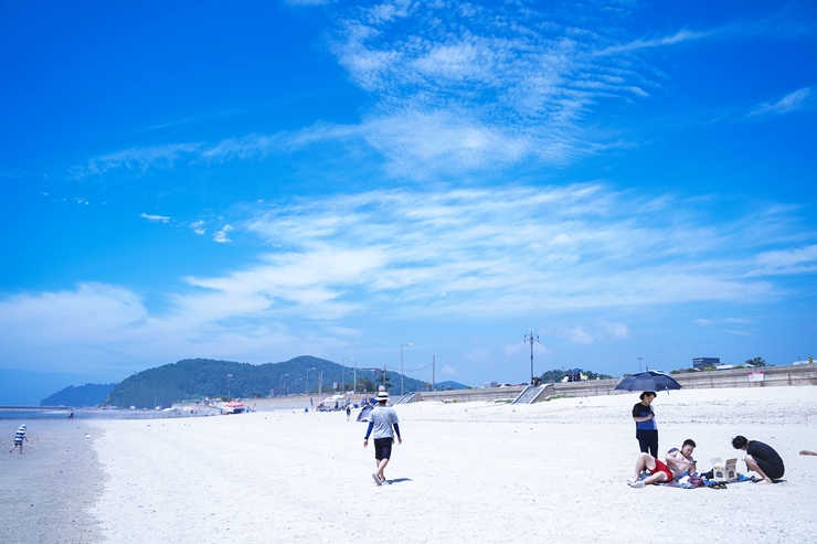 해수욕장은 길이 3.5km, 폭 100m의 넓은 백사장을 자랑하며, 동양 유일의 패각분 해수욕장으로 알려져 있는 변산반도 가볼만한곳 베스트10입니다. 해변을 따라 산책로가 잘 조성되어 있어 시원한 바닷바람을 맞으며 걷기에 좋았습니다.