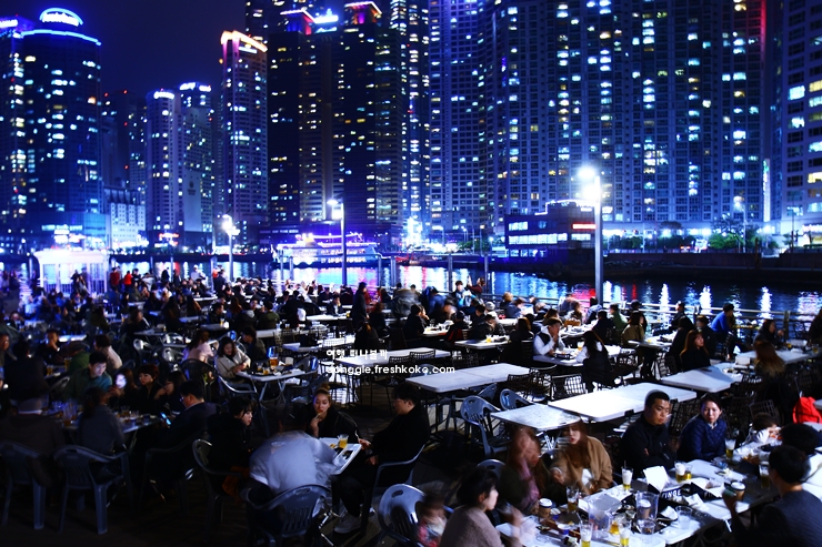 해가 지고 더베이101에 도착하니 반짝이는 고층 빌딩들이 바다 위에 그림처럼 반사되어 있었던 부산 가볼만한곳 베스트 10입니다. 바람이 선선하게 불어오는 해안 산책로를 따라 걷다 보니, 한쪽에서는 사진을 찍는 사람들로 북적이고 있었습니다.