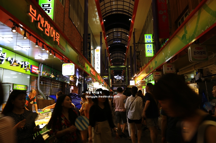 가게마다 다양한 횟감을 손질해 놓고 있었고, 원하는 생선을 골라 바로 먹을 수 있는 식당들도 줄지어 있었습니다. 바닷바람이 살짝 스쳐 가는 시장 골목을 걷다 보니, 익숙한 부산 사투리와 함께 푸짐한 인심이 곳곳에서 느껴졌습니다. 활기 넘치는 시장 풍경과 바다 냄새가 뒤섞인 이곳에서 부산의 정취를 제대로 느낄 수 있었습니다.