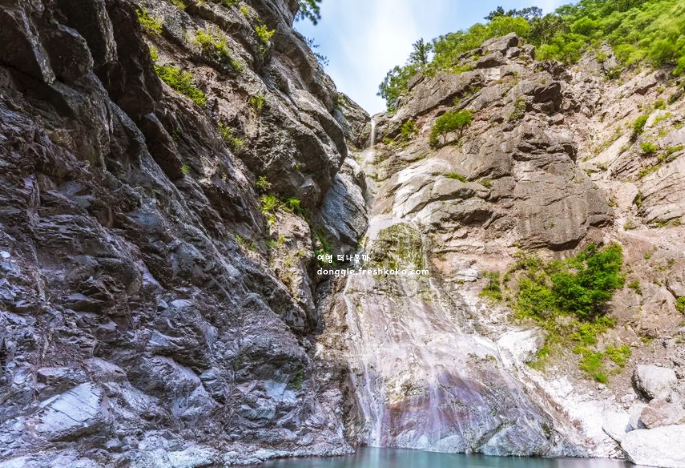 미인폭포는 숲길을 따라 한참을 걷다 보면 갑자기 시원한 소리와 함께 모습을 드러냈습니다. 높은 절벽 위에서 쏟아지는 물줄기는 생각보다 힘차고 우아한 삼척 가볼만한곳 베스트10입니다.