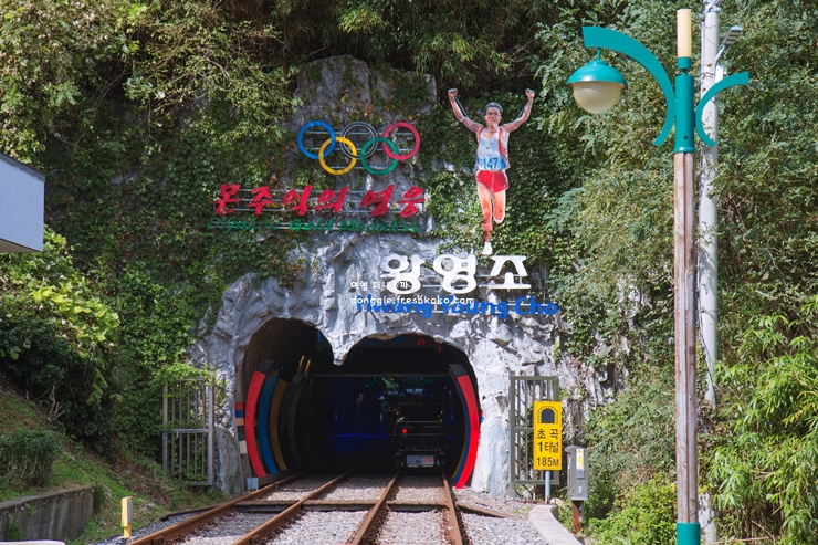 중간중간 터널을 지나갈 때는 조명과 음악이 어우러져 색다른 즐거움을 더해주었습니다. 레일바이크는 속도가 빠르지 않아 경치를 천천히 감상하기에 좋았습니다.