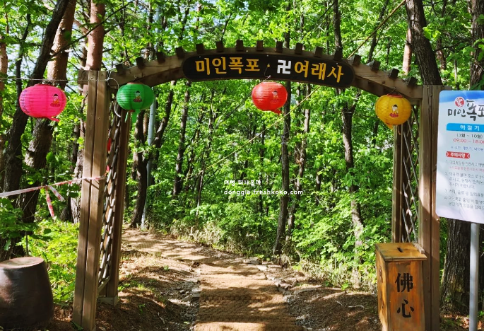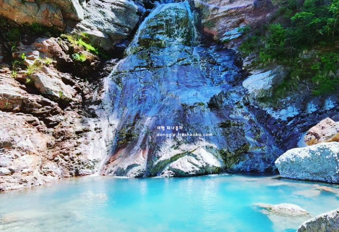 미인폭포는 숲길을 따라 한참을 걷다 보면 갑자기 시원한 소리와 함께 모습을 드러냈습니다. 높은 절벽 위에서 쏟아지는 물줄기는 생각보다 힘차고 우아한 삼척 가볼만한곳 베스트10입니다.