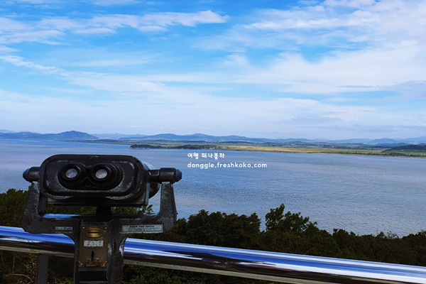 망원경을 통해 바라본 마을과 들판은 가까우면서도 닿을 수 없는 거리감을 느끼게 했습니다. 전망대 내부에는 분단의 역사와 관련된 전시물이 잘 정리되어 있어 천천히 살펴보았습니다. 창밖으로 바람이 불어오고, 잔잔한 물결 소리와 함께 적막함이 공간을 가득 채우고 있었습니다.
