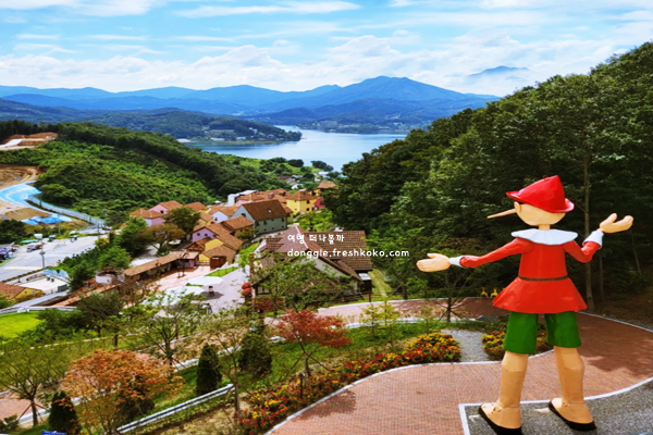 어린왕자 전시관에서는 책 속 장면을 실제로 구현해 놓아 천천히 읽으며 감상하게 되었습니다. 공연장에서는 인형극이나 마임 같은 짧은 공연이 열려 아이들과 함께 온 가족들이 즐겁게 관람하고 있었습니다. 꼭대기 전망대에서는 산과 호수가 어우러진 풍경이 펼쳐져 한참을 서서 바라보았습니.