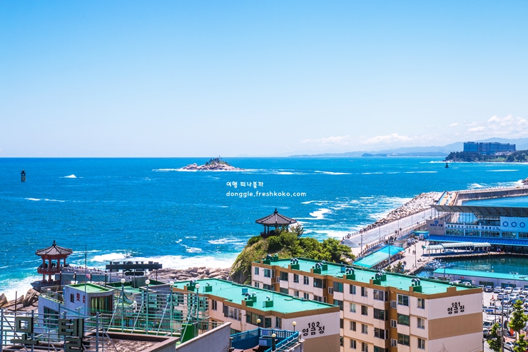 영금정은 바닷가 바로 앞에 있어 도착하자마자 파도 소리가 반겨줬습니다. 나무 데크를 따라 걷다 보면 바위 위에 세워진 정자가 눈에 들어옵니다. 정자에 올라서면 사방으로 펼쳐진 동해 바다와 멀리 보이는 항구까지 한눈에 들어온 속초 가볼만한곳 베스트10입니다. 바위 아래쪽에는 해녀분들이 해산물을 캐는 모습도 볼 수 있어 인상 깊었습니다.