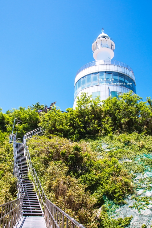 등대전망대에 오르기 전 계단을 따라 올라가는 길이 조용하고 아늑한 속초 가볼만한곳 베스트10입니다. 오르는 동안 나무 사이로 바다가 조금씩 보이기 시작해 기대감이 커졌습니다.