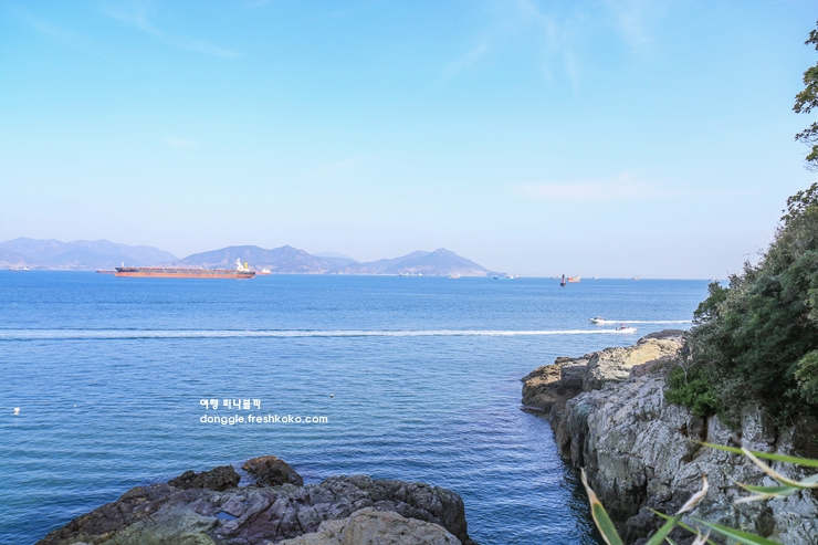 동백꽃이 피는 계절이라면 붉은 꽃잎이 흩날리는 모습까지 더해져 한층 더 운치 있는 풍경이 될 것 같았습니다. 산책로를 따라 오르면 등대로 가는 길이 이어지고, 정상에 도착하면 시원하게 펼쳐진 바다를 한눈에 내려다볼 수 있었습니다. 저 멀리 여수항과 돌산대교까지 보이며, 맑은 날에는 수평선까지 또렷하게 보여 전망이 무척 시원했습니다.