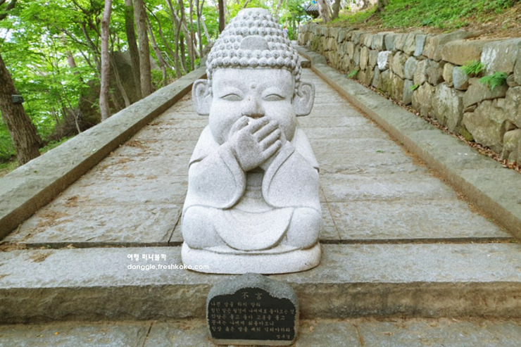 내려오는 길에는 주변 바위에 새겨진 불교 관련 조각들도 볼 수 있어 천천히 둘러보는 재미가 있습니다. 길이 가파른 편이지만 중간중간 벤치가 있어 쉬엄쉬엄 걷기 좋고, 곳곳에 놓인 돌탑들이 길목마다 아늑한 분위기를 더해줍니다.