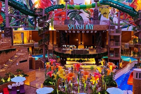 튜브를 타고 흘러가며 천장을 바라보니, 리조트 특유의 세련된 분위기와 쾌적함이 곳곳에 배어 있었어요. 아이들을 위한 슬라이드 구역과 유아 풀도 잘 마련돼 있어서 가족 단위 방문객들이 특히 많았어요.