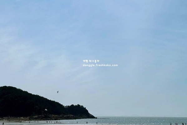 멀리 배들이 오가는 풍경이 배경처럼 펼쳐졌고, 간간이 바람에 섞여 오는 조개구이 냄새도 바다와 잘 어울렸어요. 파도가 잔잔해서 물놀이를 하기에 부담 없었고, 바다에 발 담근 채 하늘을 올려다보니 마음이 한결 가벼워졌어요.