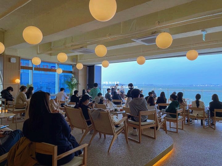 음료는 깔끔한 밸런스가 돋보였고 한 모금마다 미세한 산미가 바다 냄새와 어울려 오후의 리듬을 정리해 주었습니다. 빵 트레이에 올린 따뜻한 구움 과자는 결이 바삭하게 부서져 소리까지 맛처럼 선명했습니다. 창밖 데크 쪽으로 사람들이 오가고, 유리면에 비친 구름이 적당히 흘러 풍경이 시계처럼 느리게 움직였습니다.