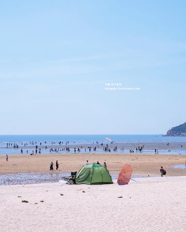 해질 무렵, 붉게 물든 하늘이 바다 위에 얇게 깔리면서 물속에서 빛이 솟는 듯한 장면이 펼쳐졌고요. 섬의 고요함이 귀를 채우면서 자연이 내는 소리만 들리는 시간이 그렇게 흘렀습니다. 텐트를 치거나 발만 담그고 앉아 있어도 하루가 그냥 저물 수 있을 만큼 아무것도 하지 않아도 되는 곳이었습니다.