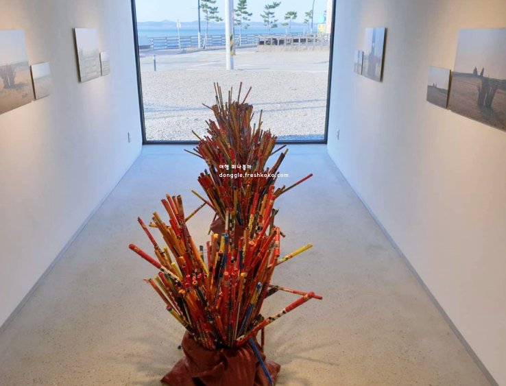 제부도 아트파크에 도착하자, 6개의 컨테이너로 구성된 독특한 건축물이 눈길을 사로잡은 제부도 가볼만한곳 베스트10이었습니다. 1층 갤러리에서는 다양한 예술 작품이 전시되어 있어, 예술과 자연이 어우러진 공간을 경험할 수 있었습니다.