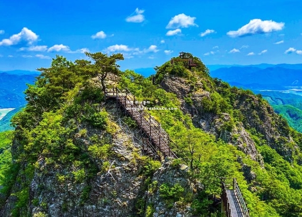 바위 능선을 따라 걷는 구간에서는 조심스럽게 발을 디뎌야 했고, 시야는 그만큼 탁 트여 있었습니다. 정상에 오르면 진안군 일대가 한눈에 들어오고, 날씨가 맑으면 멀리까지 시야가 이어졌습니다.
