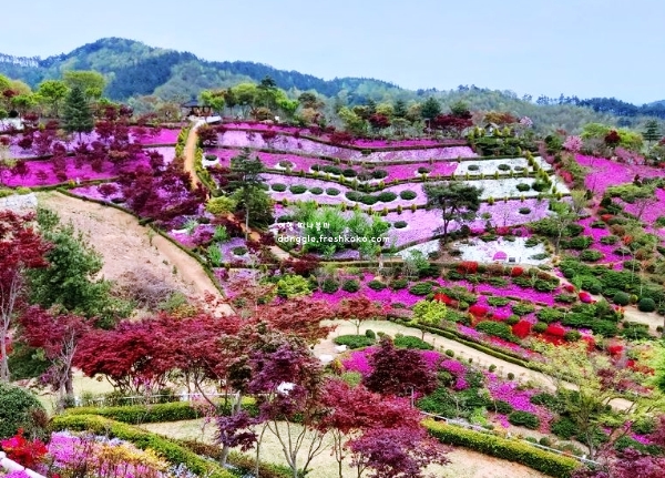 꽃잔디동산은 진안읍 근처에 있어서 접근성이 좋아 가볍게 들르기 좋았습니다. 입구부터 진분홍색과 연보라색 꽃잔디가 나란히 펼쳐져 있어서 시선을 사로잡았습니다. 산책로는 비교적 평탄해서 아이들이나 어르신들과 함께 걷기에도 어렵지 않았습니다. 꽃 사이사이에 포토존이 마련되어 있어 사진 찍는 사람들이 많았고, 저도 한참을 머물렀습니다.