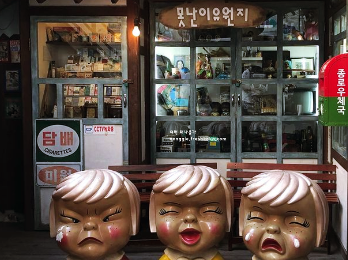 70~80년대 교실을 재현한 공간에서는 나도 모르게 나무 책상에 손을 얹고 앉아보고 싶어졌습니다. 당시 라디오나 텔레비전, 만화책까지 세월의 흔적이 고스란히 남아 있어 어른들에겐 추억이고 아이들에겐 새로움이었어요.