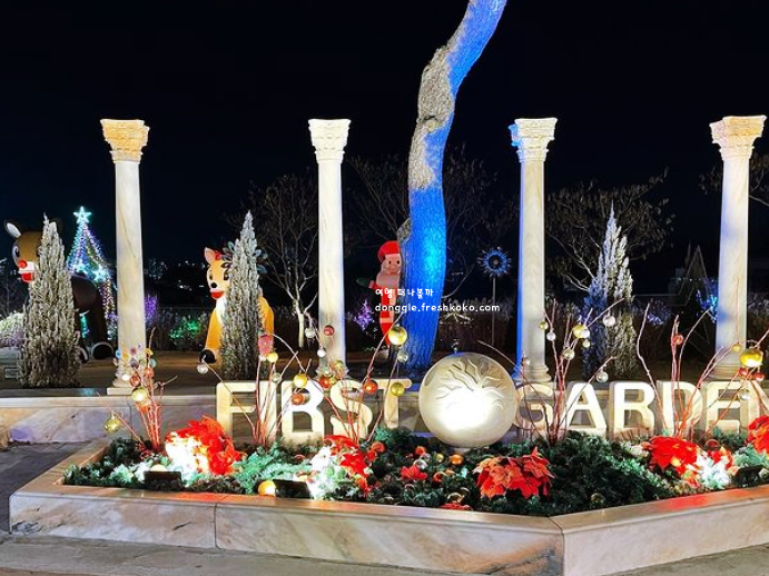 퍼스트가든에 들어서자 꽃과 조명이 어우러진 풍경이 마치 동화 속 정원처럼 펼쳐졌습니다. 낮에는 햇살 아래 싱그러운 정원이 반겨주고, 해가 지면 반짝이는 조명들이 공간을 완전히 다른 분위기로 바꿔줬어요. 정원 안에는 다양한 테마존이 있어서 걷는 길마다 분위기가 달라졌고, 사진을 찍을 포인트도 정말 많았습니다.