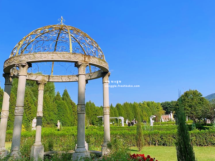 커다란 분수와 꽃터널, 정원 사이사이에 설치된 조형물들 덕분에 산책이 지루할 틈이 없었어요. 아이들을 위한 놀이 공간도 잘 마련되어 있어서 가족 단위 방문객들이 많이 찾는 이유를 알겠더라고요.