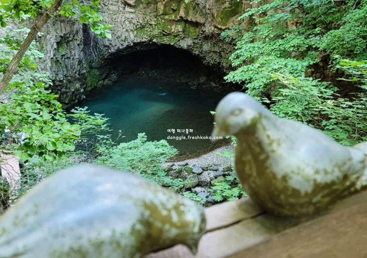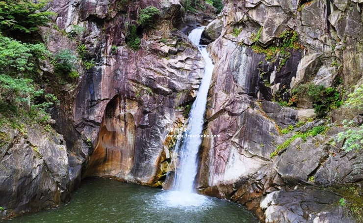 눈앞에 펼쳐진 비둘기낭폭포는 마치 영화 속 한 장면처럼 고요하면서도 힘이 있었습니다. 절벽을 타고 떨어지는 물줄기 아래로는 옥빛 물이 고여 있었고, 바람은 물안개를 실어 나르며 얼굴을 스치고 지나갔습니다.
