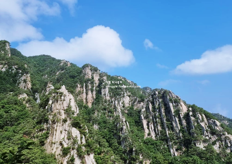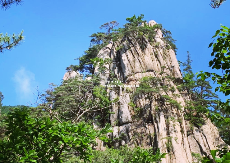중턱쯤 올라가니 커다란 암벽들이 병풍처럼 둘러싸여 있고, 바위마다 이름이 붙어 있어 보는 재미가 있었습니다. 바람이 솔잎 사이로 스며들어 귀에 닿을 때마다 자연의 숨결이 가까이 느껴졌습니다.
