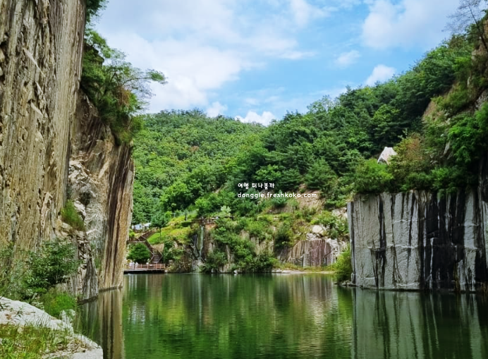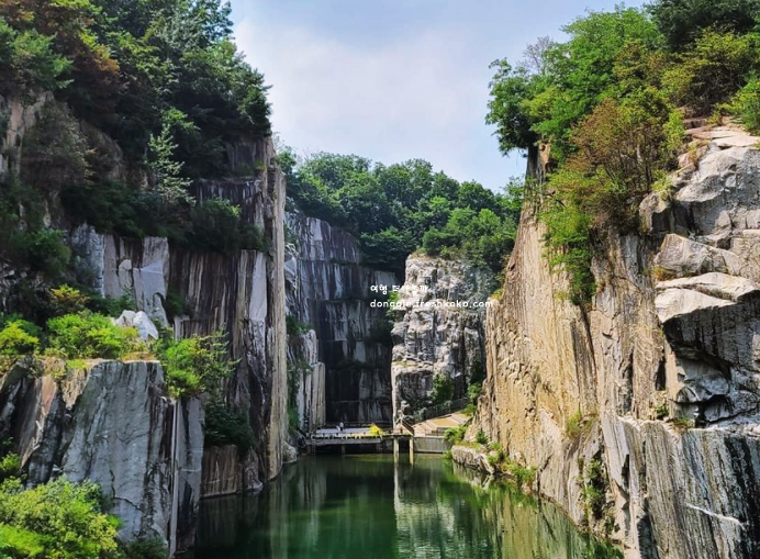 입구에서 모노레일을 타고 오르다 보면 바위 절벽 사이로 펼쳐지는 풍경이 점점 가까워집니다. 옛 채석장을 그대로 살린 천주호는 물빛이 에메랄드빛으로 반짝이며 한참을 바라보게 만들었습니다.