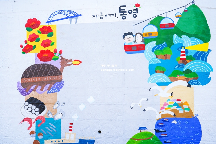 동피랑벽화마을에 도착하니 알록달록한 벽화들이 골목 곳곳을 채우며 마을 전체가 하나의 작품처럼 보였습니다. 언덕길을 따라 걷다 보면 벽마다 저마다의 이야기를 담은 그림들이 이어져 있어 발걸음을 멈추고 한참을 바라보게 되는 3월 봄나들이 갈만한 곳입니다.