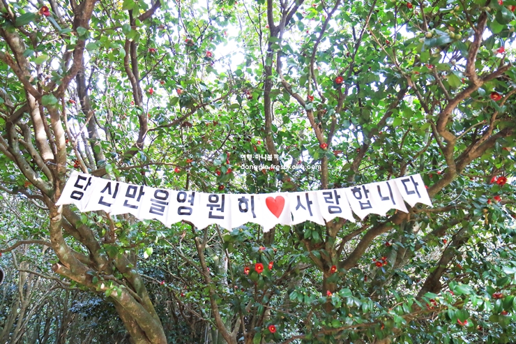 동백나무 숲길로 들어서자 곳곳에 동백꽃이 흩날리며 부드러운 햇살과 어우러져 더욱 따뜻한 분위기가 느껴졌습니다. 바닥에 떨어진 붉은 꽃잎들도 또 하나의 풍경이 되어 길을 따라 걷는 내내 눈길을 사로잡았습니다. 숲길을 지나 전망대에 오르니 푸른 바다와 함께 붉게 물든 동백꽃이 어우러져 색다른 장면을 만들어 주었습니다.