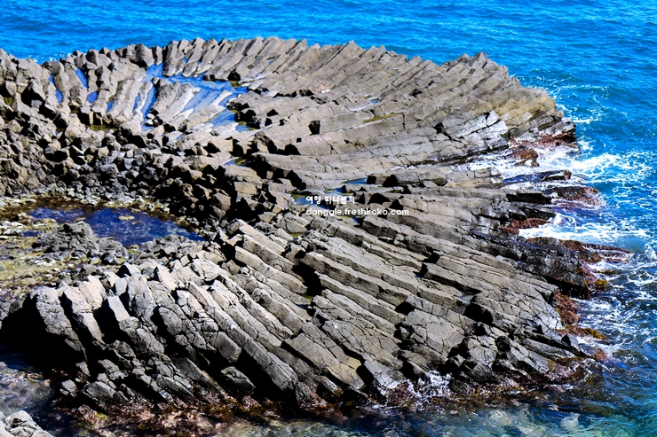 주상절리파도소리 길을 따라 걷기 시작하니 발 아래로 거센 파도가 부서지며 시원한 소리를 들려주었던 3월 봄나들이 갈만한 곳입니다. 길을 따라 펼쳐진 주상절리는 마치 누군가 정교하게 깎아 놓은 듯한 모습으로 바다와 멋지게 어우러졌습니다.