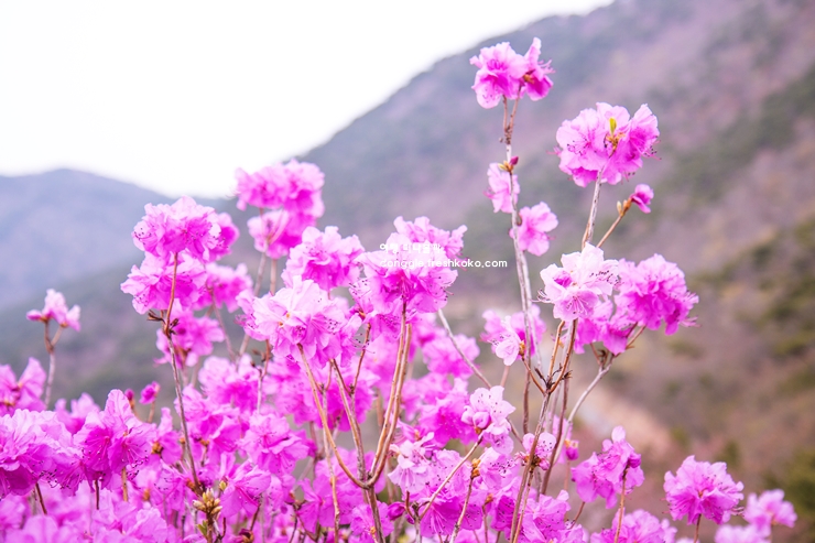 해가 기울기 시작하자 분홍빛 능선이 노을과 만나 더욱 따뜻한 분위기를 만들어 주었습니다. 산을 내려오며 다시 한 번 뒤를 돌아보니, 붉게 물든 하늘과 어우러진 진달래가 더욱 인상적이었습니다.