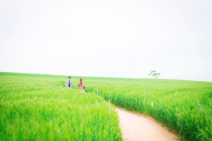 햇살에 반짝이는 보리 이삭들이 고개를 살랑살랑 흔들며 반겨주는 듯한 기분이 들었습니다. 넓은 들판은 어디에서 사진을 찍어도 배경이 되어줘 많은 사람들이 즐겁게 추억을 남기고 있었습니다. 중간중간에 나무데크와 그늘막이 마련되어 있어 걷다 쉬기에도 불편함이 없었습니다.